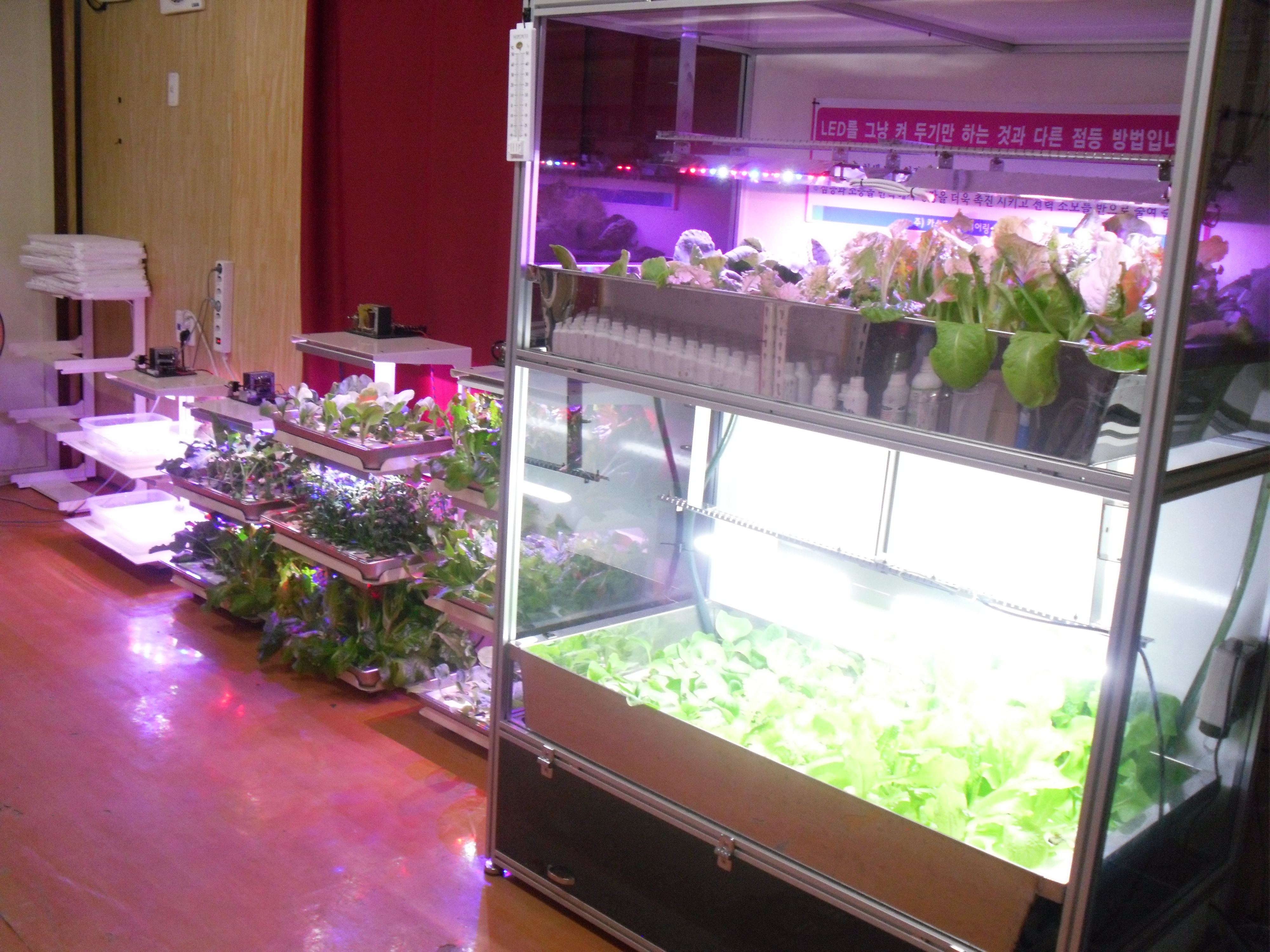 ¾Æ·¡ (»çÁø 1) ¼³¸í: ¿Â½ÇÀÇ ³»ºÎ. ¿À¸¥ÂÊÀ¸·Î Çü±¤µî°ú ¼ø¼ö LED ¸¸ÀÇ ½Ä¹°Àç¹è ºñ±³